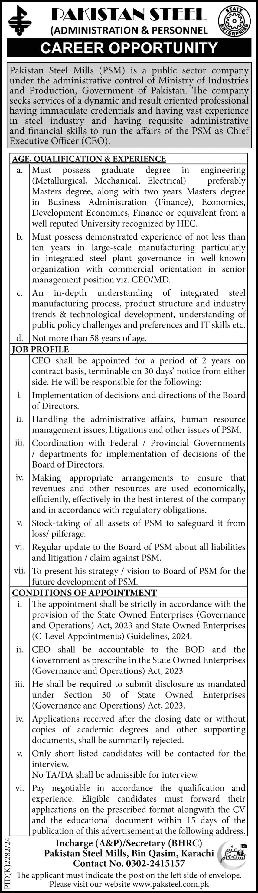 FOR THE POST OF CEO