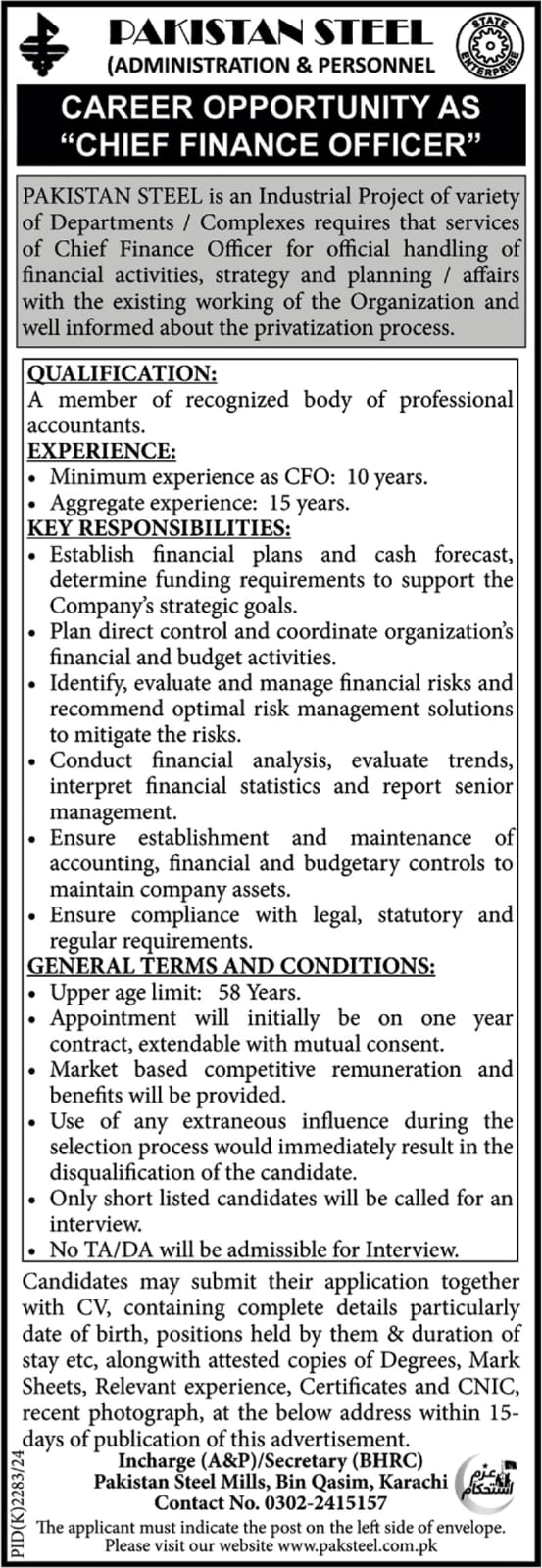 FOR THE POST OF CFO